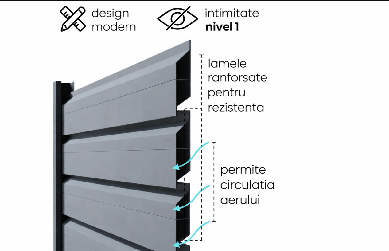 Un gard din aluminiu model Jaluzea Deluxe reprezintă o soluție modernă și durabilă pentru delimitarea și protejarea proprietății. Acest tip de gard combină rezistența și funcționalitatea aluminiului cu un design elegant și contemporan, ideal pentru proprietarii care doresc atât securitate, cât și un aspect estetic plăcut.